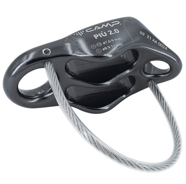 CAMP Più 2 è un assicuratore a secchiello per l’arrampicata, ideale per l’assicurazione del primo di cordata e di uno o due secondi. Autobloccante nel caso di due secondi. Il Più 2 funziona alla perfezione anche nelle calate in corda doppia.