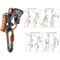• possibilità di sbloccaggio e calata progressiva di un secondo sotto tensione, grazie all’inserimento di un moschettone da rinvio nell’apposito foro.