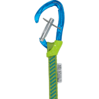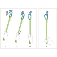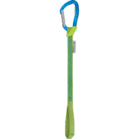 Sistema composto da moschettone NIMBLE TRICKY, fettuccia semirigida in poliammide da 35 cm e gommino FIXIT.
