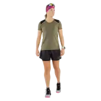 Focus sul comfort: i pantaloncini Alpine Pro 2in1 da donna sono composti da un pantaloncino interno in mesh e un pantaloncino leggero, per il massimo comfort durante il trail running. L’attrito che si crea a causa dello sfregamento delle cosce mentre si corre può mettere fine al divertimento sui trail. Per fortuna esistono gli short Alpine Pro 2in1! Questi pantaloncini da corsa con una sofisticata costruzione 2in1 restano molti comodi sulle distanze medie e lunghe e fanno arrivare al traguardo senza provare dolore. Il materiale di alta qualità è gradevole sulla pelle e ha ottime proprietà di traspirabilità e ventilazione anche nelle corse più impegnative. Il pantaloncino interno aderente, con cuciture piatte, impedisce lo sfregamento e veicola l’umidità rapidamente ed efficacemente, mentre il pantaloncino largo in materiale riciclato conferisce un look atletico. Gli short hanno la vita elastica regolabile che garantisce una vestibilità sicura dal primo all’ultimo metro di dislivello. Due tasche con mesh e una tasca con zip offrono posto per gel energetici, borraccia morbida o lo smartphone, mentre le strisce riflettenti aumentano la visibilità nel fuoripista, con il brutto tempo e quando fa buio. Pantaloncini Alpine 2in1 – Comodi, fino all’ultimo metro di dislivello.