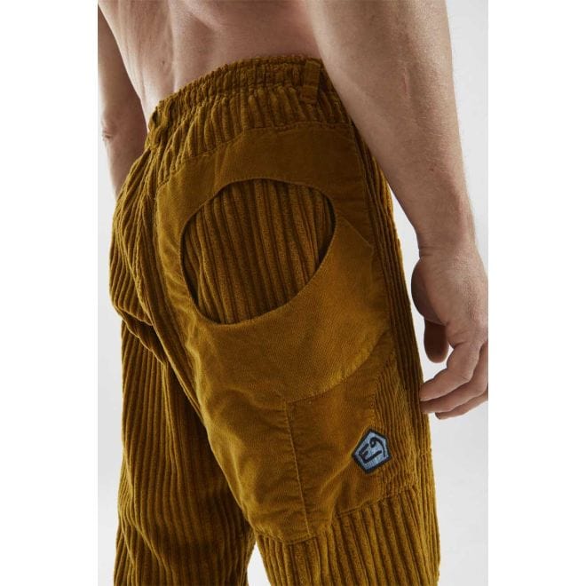 Progettati per il comfort e la mobilità, questi pantaloni da outdoor e arrampicata sono realizzati in cotone biologico, con quattro diverse texture in velluto. Includono una tasca posteriore con esclusivo ricamo e una toppa in ecopelle sulla gamba sinistra. La cintura e gli orli delle gambe regolabili garantiscono un comfort ottimale con una vestibilità regolare.