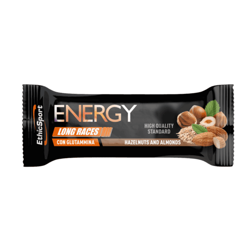 Le barrette della nuova linea Tecnica ENERGY sono studiate per chi pratica attività sportive. ENERGY LONG RACES è una barretta per sportivi consigliata per fornire energia in forma solida, prima e durante l’allenamento. La barretta ENERGY LONG RACES è stata sviluppata per offrire un apporto energetico importante e ripartito su più nutrienti, apporta Glutammina, risulta pertanto indicata per le uscite più lunghe e per le attività di resistenza più impegnative. Offre un apporto energetico veloce, ma che dura nel tempo.