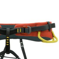 - cintura lombare ergonomica e dotata di due fibbie di regolazione in lega leggera che permettono una centratura perfetta e mantenendo gli anelli porta-materiali in posizione ottimale