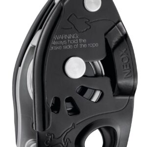 – bloccaggio assistito con camma che garantisce un’elevata tolleranza della mano lato frenante, indipendentemente dall’angolo tra la corda dell’arrampicatore e quella lato frenante,