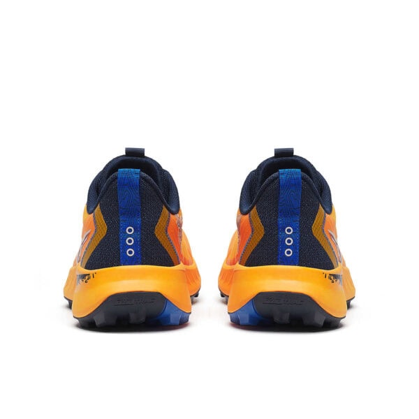Tomaia in mesh ad alta resistenza con protezione aggiuntiva nei punti di maggiore abrasione e passante a D compatibile con le ghette. Corsa tecnica su sentiero.